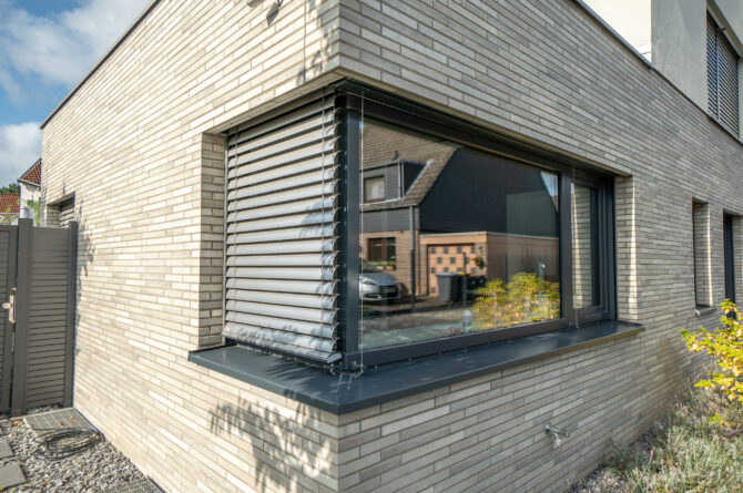 - Ganz-Glas-Ecken mit Raffstore-Anlagen