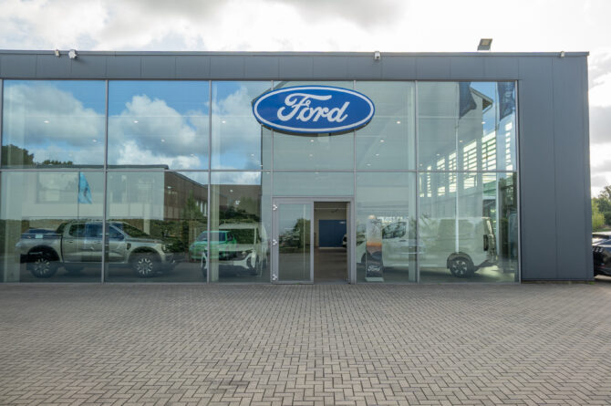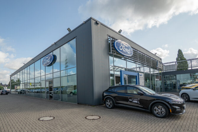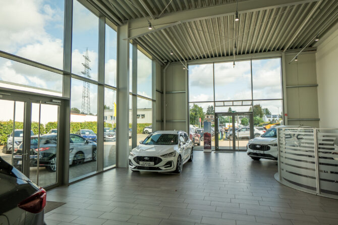 Neubau Autohaus, Pfosten-Riegel-Konstruktion